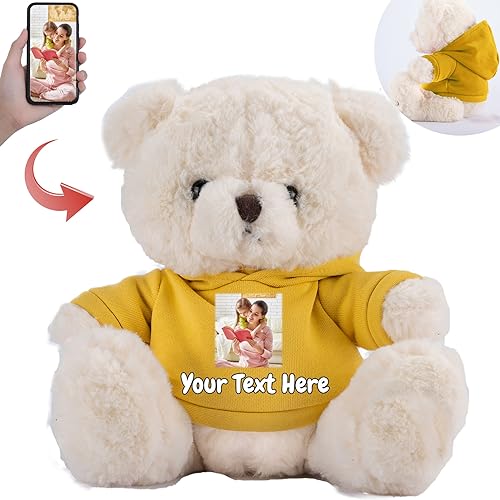 GOUFEISUN Customised Gifts Stuffed Bear Plush with Personalised Text+Photo, Personalised Teddy Bear for Family Friends, Impressive Gifts for Valentines Day Birthday Christmas (8 inch-Text+Photo)