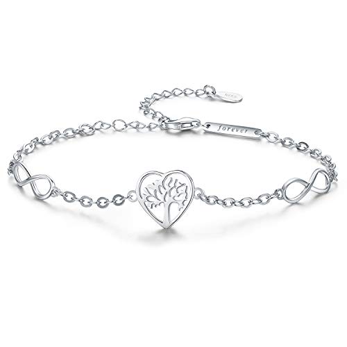 TANGPOET Tree of Life Bracelet for Women 925 Sterling Silver Infinity Friendship Bracelets Adjustable Chain Valentines Day Jewellery Gifts for Ladies Girls Friends Sister Daughter Mum