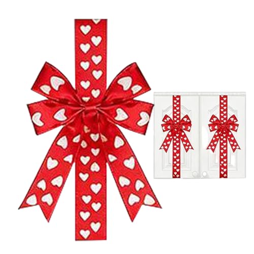 Valentine's Day Cabinet Bow, 25 cm Romantic Red and White Ribbons, Valentine's Day Heart Bow, for Friends, Weddings, Country House, Bedroom, Home, Hallway, Holiday, Birthday, Party, Student Dorm