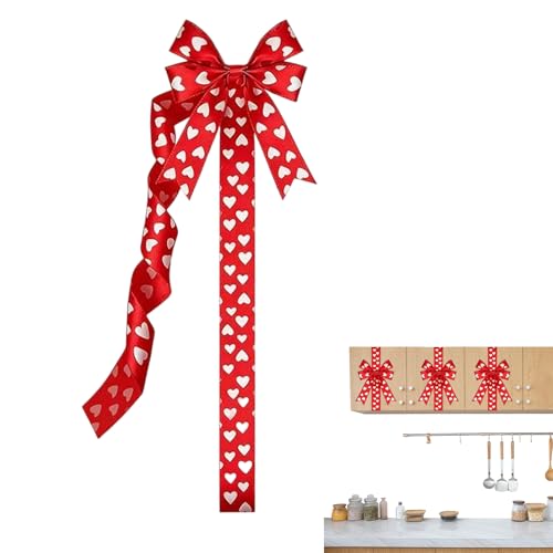 Valentine's Day Cabinet Bow, 9.8 Inch Red and White Romantic Ribbons, Valentine's Day Kitchen Decoration, for Friends, Weddings, Country House, Bedroom, Home, Hallway, Holiday, Birthday, Party