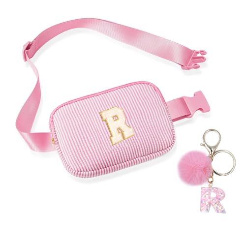 Crossbody Bags for Teenagers, Bum Bag with Cute Letter Chain for Women Friends Sister, Pop Gifts for Birthday and Festival, Personalized Bumbags Purse for Teen Girl (Pink R)