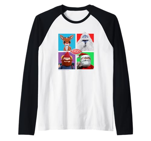 Rudolph and Friends Pop Art Portraits Retro Christmas Raglan Baseball Tee