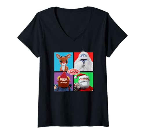 Womens Rudolph and Friends Pop Art Portraits Retro Christmas V-Neck T-Shirt