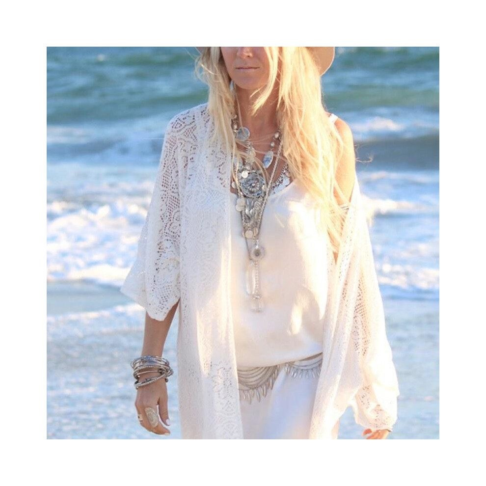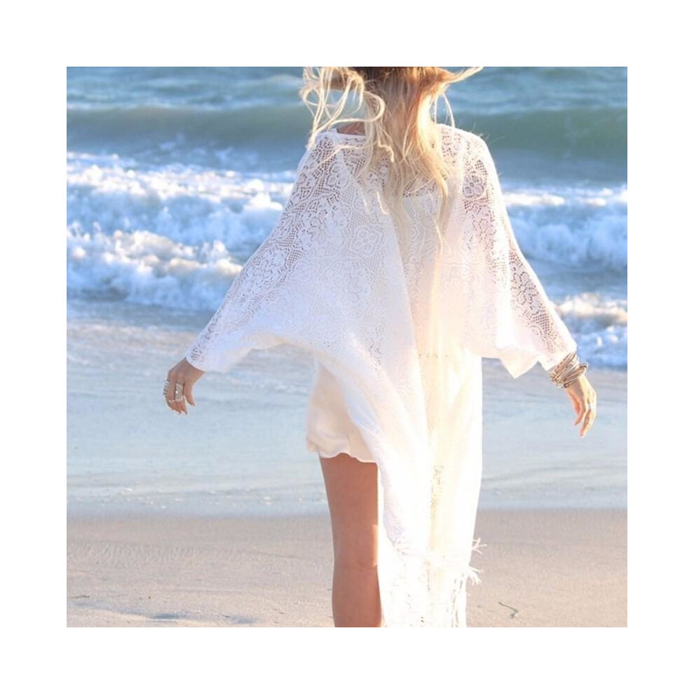 Boho Women Fringe Lace kimono cardigan White Tassels Beach Cover Up Cape Tops Blouses s72
