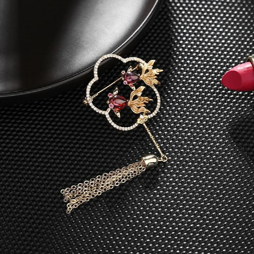 Vintage Chinese Style Brooches Goldfish Fan Safety Pins with Fringe Suit Overcoat Cardigan Jewelry Accessories