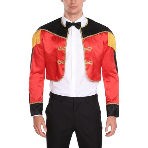 Yiesvsov Men's Matador Cropped Jacket Fringed Long Sleeve Bullfighter Costume Theme Party Holiday Fancy Dress Red L