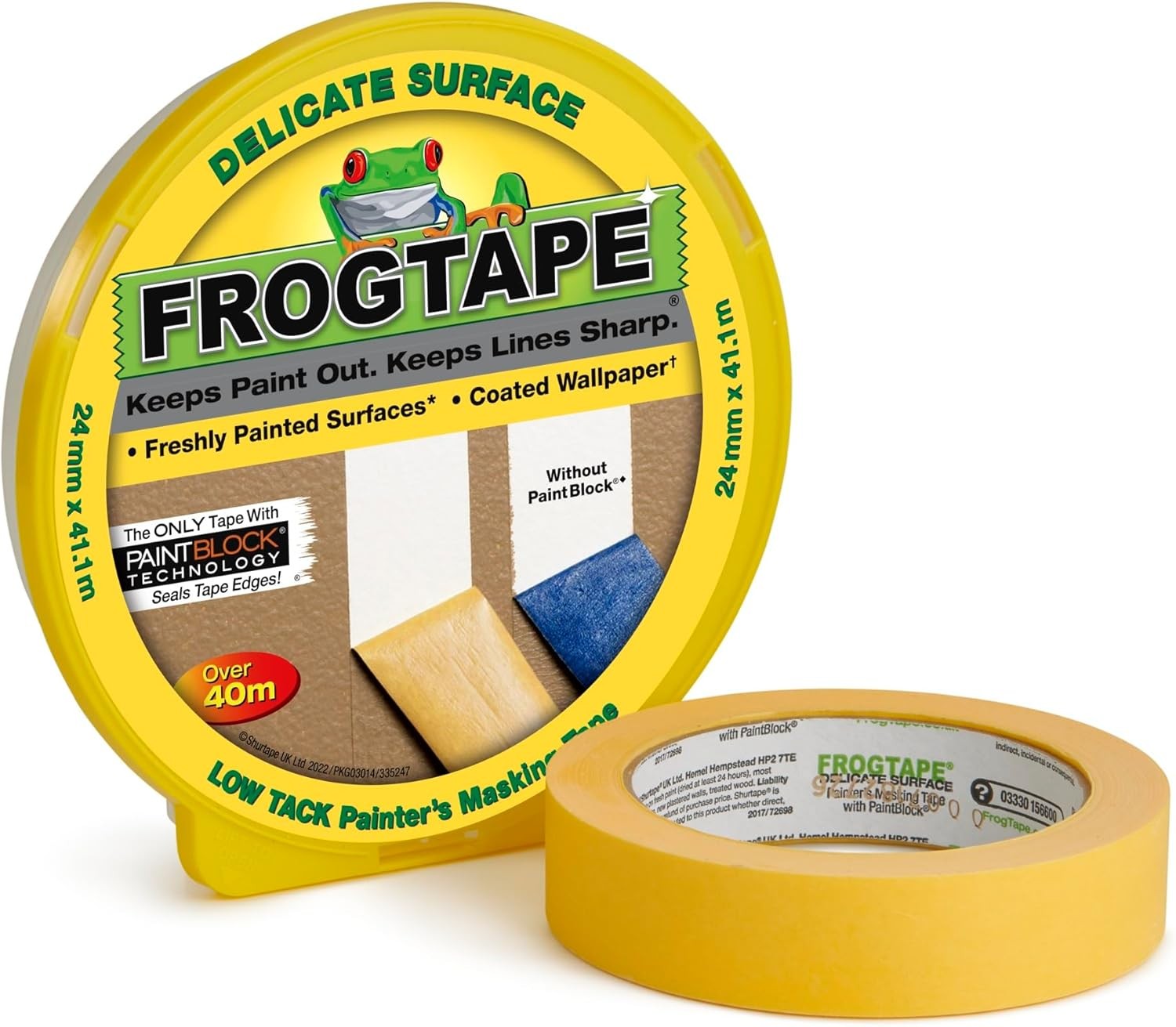Frog Tape Yellow Delicate Surface Painters Masking Tape 24mm x 41.1m. Indoor painting and decorating for sharp lines and no paint bleed
