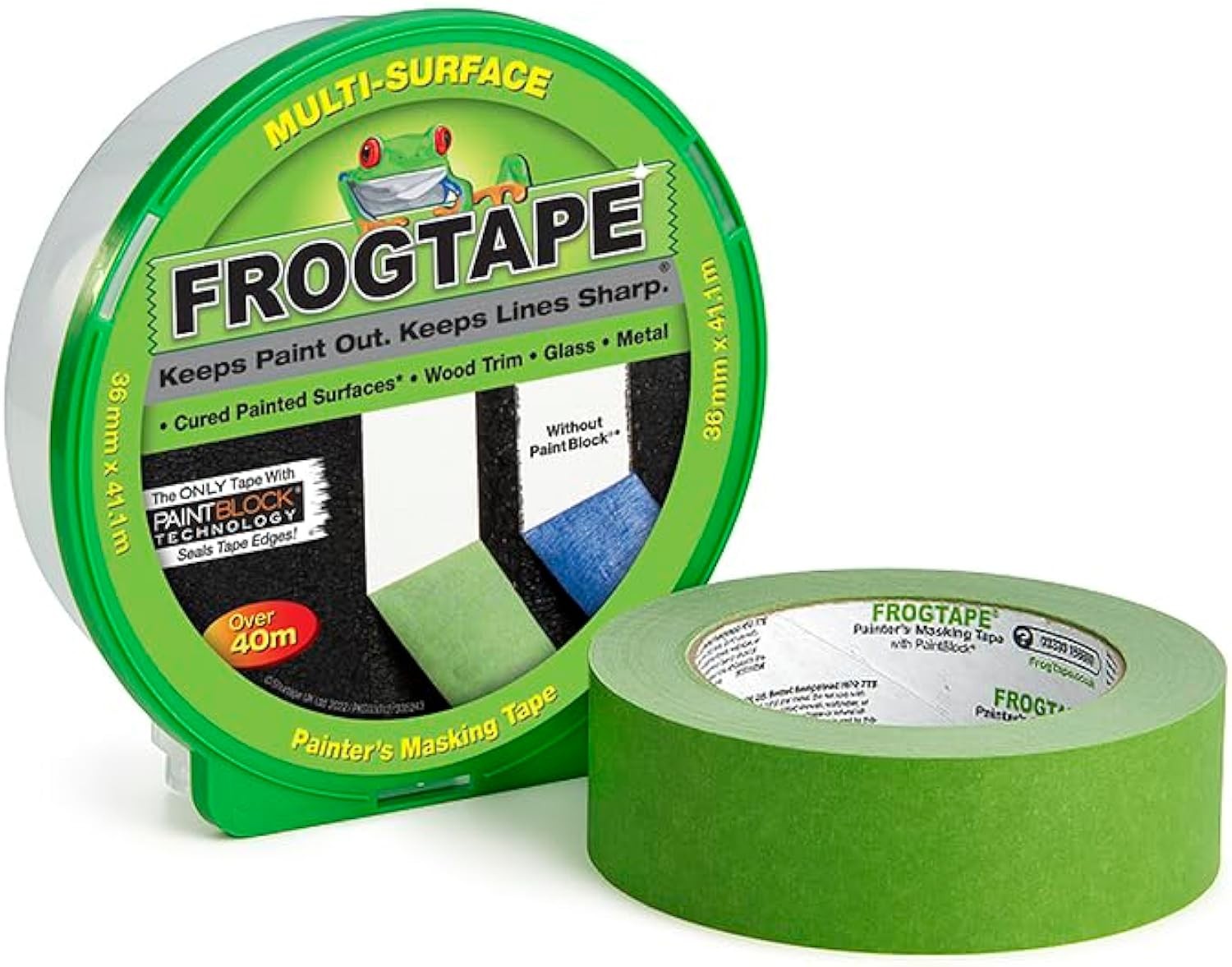 Frog Tape Green Multi Surface Painters Masking Tape, Indoor Painting and Decorating For Sharp Lines and No Paint Bleed 36mm X 41.1m