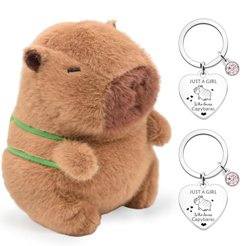 KAOVCXR 1 PCS Capybara Plush 2PSC Capybara Keyring & Keychain for Capybara Lovers,25cm Capybara Teddy, Realistic Soft Capybara Toy, Cute Capybara Plush Toy for Kids Boys Girls (Frog backpack)