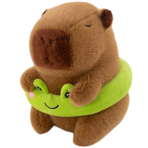 SOMUSICTY Capybara Teddy 25cm Adorable Capybara Plush with Frog Swimming Ring Capybara Gifts for Home Decrotions Birhtday Present