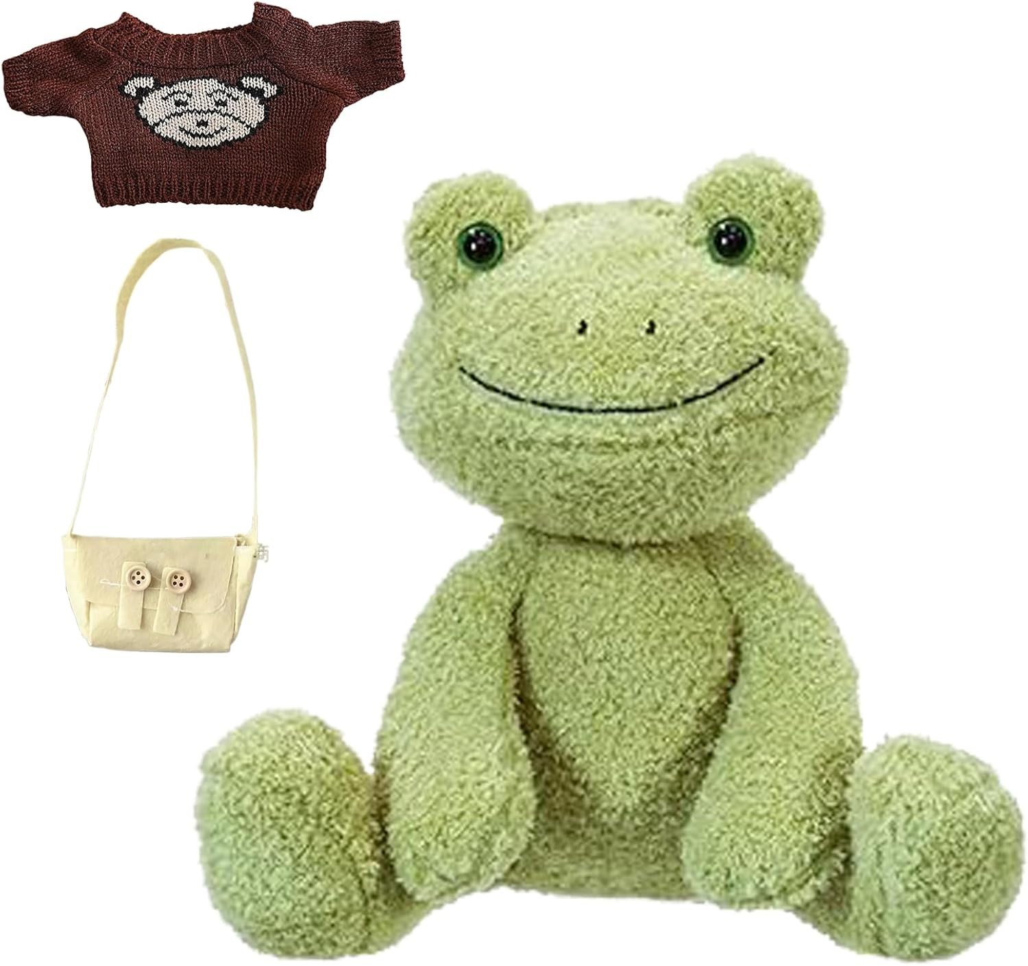 WPNCYK 3 Piece Set Frog Teddy, Frog Plush, with Sweater and Bag, Soft Stuffed A