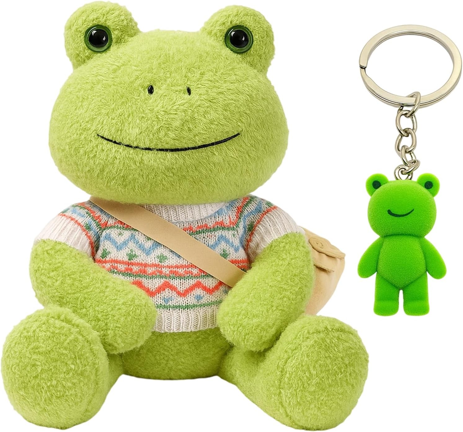 Frog Toy, Soft Plush Stuffed Animal with Keychain, Green Frog Teddy for Babies