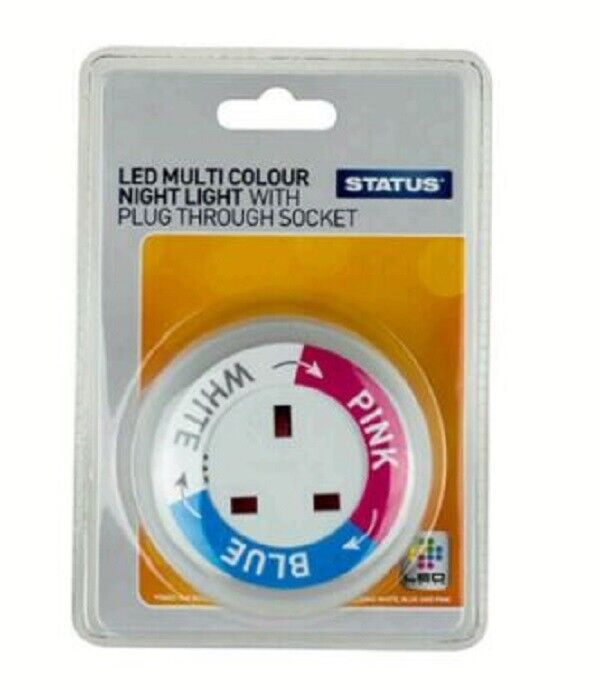 Automatic Auto LED Night Light Dusk Till Dawn Plug Socket Multi Colour Plug Thru