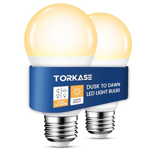 Torkase Dusk to Dawn Light Bulbs, 13W E27 Led Light Sensor Bulb 100W Equivalent, 3000K Warm White Auto On/Off Dusk Till Dawn Bulbs for Outdoor Garage Awning Light, 2 Pack