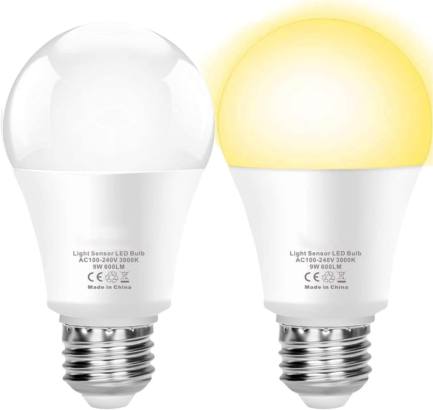 9W E27 Light Sensor LED Bulbs, 6000K Dawn Till Dusk, Smart Outdoor Indoor 2 Pack
