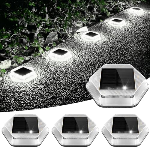 NATPOW Solar Deck Lights, Dusk Till Dawn Outdoor Lights Solar Power, Cool White Ground Lights, IP65 Waterproof Decking Lighting, LED Outdoor Path Light for Garden Lawn Pond Pathway Step 4Pack