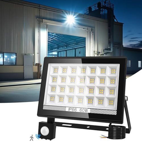 NATPOW 60W Security Light Outdoor Motion Sensor, Dusk Till Dawn Outdoor Lights, Cool White 6000LM Flood Lights LED with Smart PIR Sensor, Waterproof Wall Light for Garden, Backyard, Streets