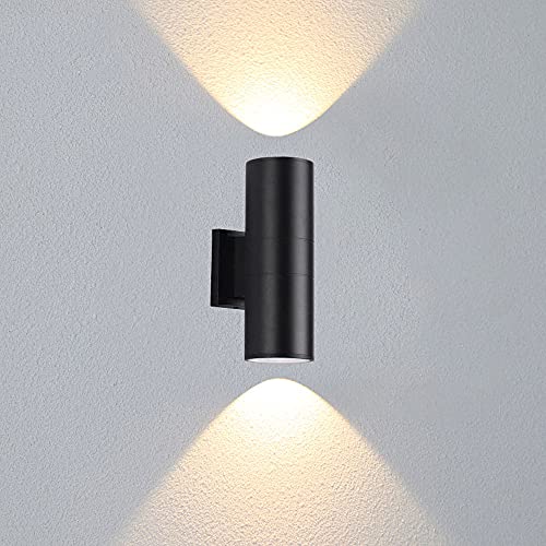 HLFVLITE Outdoor Wall Light 6W Up Down Outside Light Die-Caster Aluminum Front Door Light Mains Powered Led Black Wall Lamp, IP54 Waterproof, Cold Whi