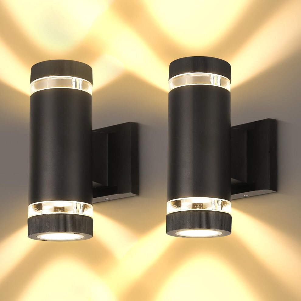 YICALE Outdoor Wall Lights Mains Powered 2PCS,LED Up Down Outside Light 3000K IP65 Waterproof Front Door Light,Aluminium Porch Lights Outdoor,GU10 Round External Wall Lamp for Patio,Garden,Terrace