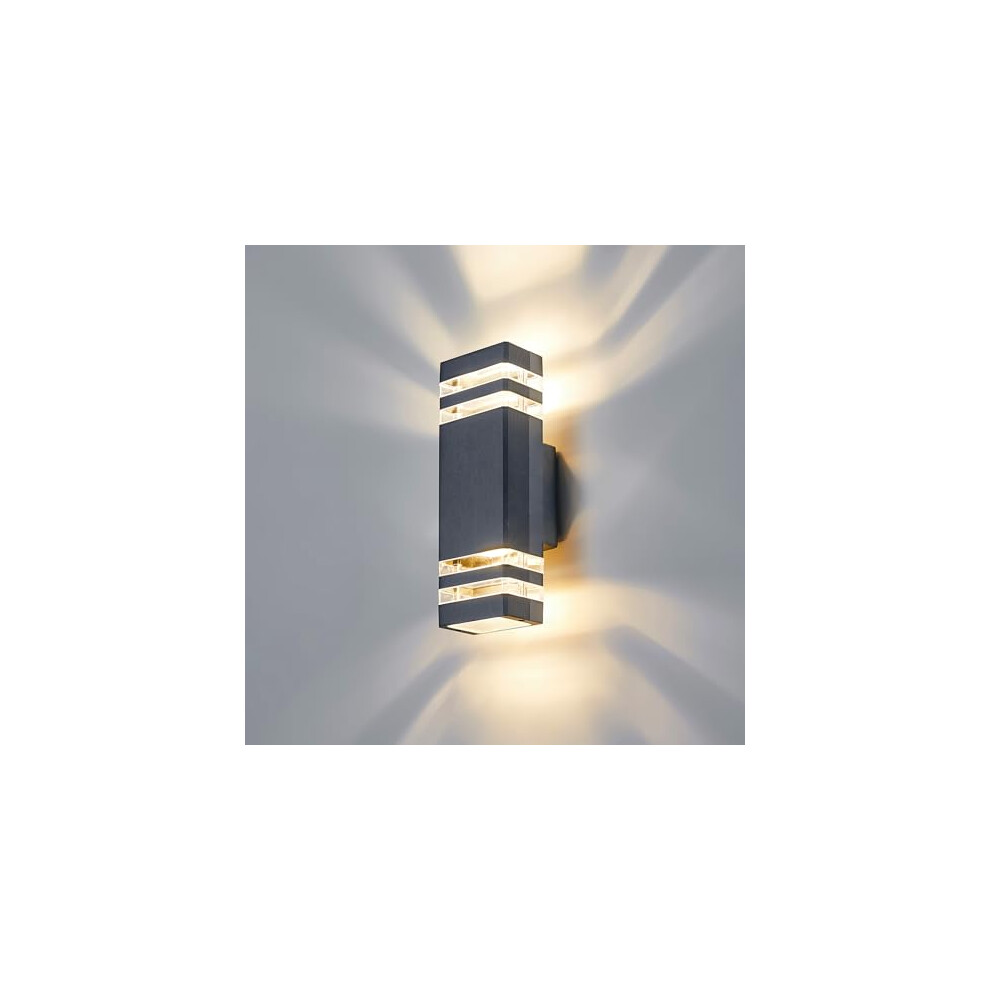 CELAVY Outdoor Wall Lights Mains Powered Outside Up Down Lights, IP65 LED Porch Front Door Light, Waterproof Square GU10 Exterior Modern Lighting External Sconce for House 2 Pack, Anthracite Grey