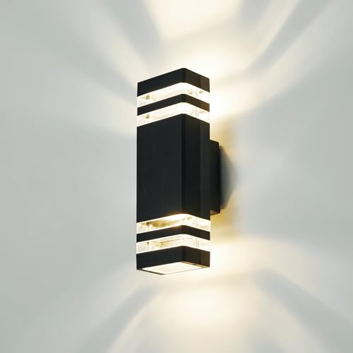 CELAVY Outdoor Wall Lights Mains Powered, 6000K Outside Up Down Lights, IP65 Waterproof Front Door Porch Light, LED Modern Square Exterior Lighting GU10 External Sconce Wall Mounted for House, Black