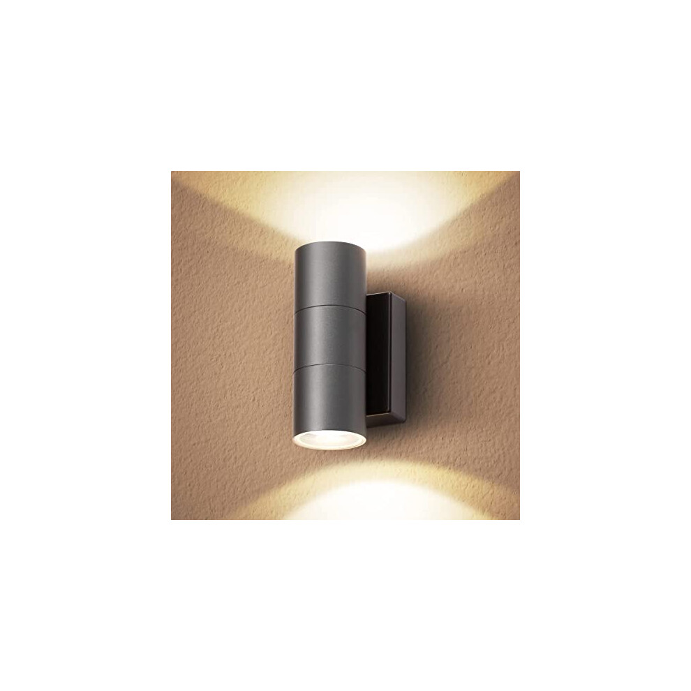 LMP Outdoor Wall Lights Mains Powered, Up Down Outside Lights Anthracite, IP65 External LED Front Door Lamp Porch Light Electric, Exterior GU10 Round Lighting Sconce Wall Mounted for House