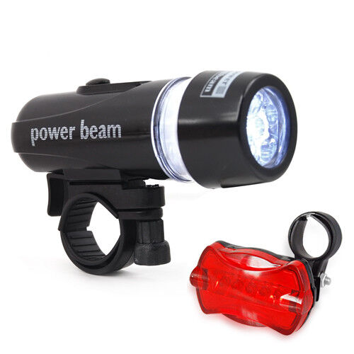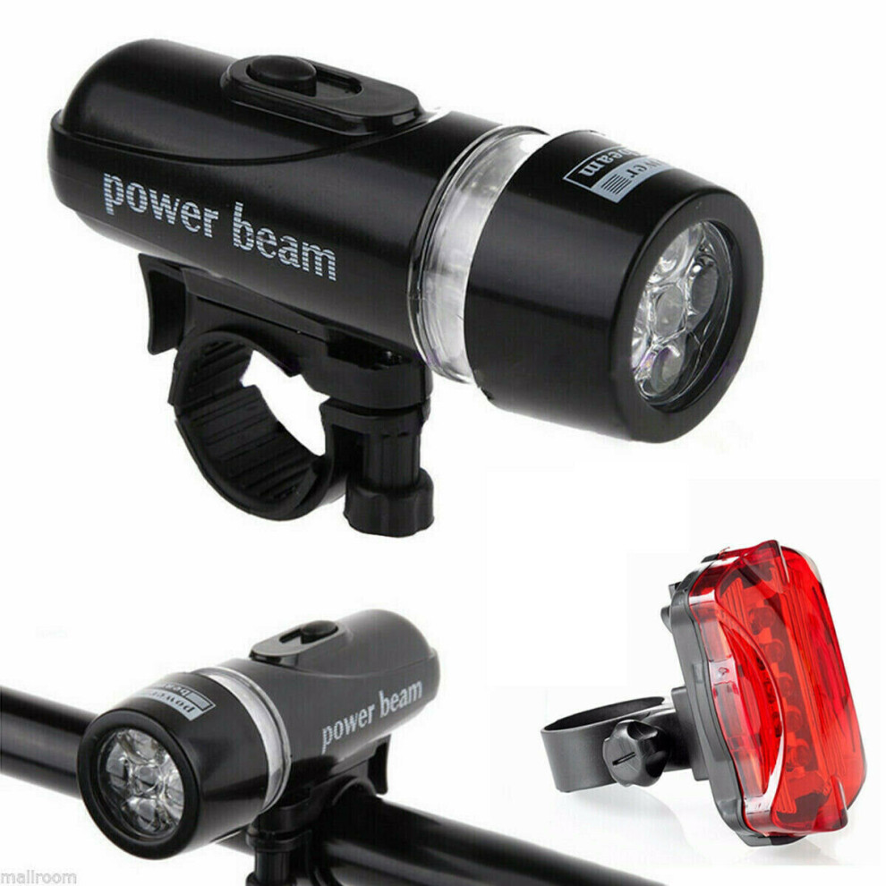 Power Beam Bright 5 LED Bike Mountain Bicycle Cycle Front Rear Back Tail Lights