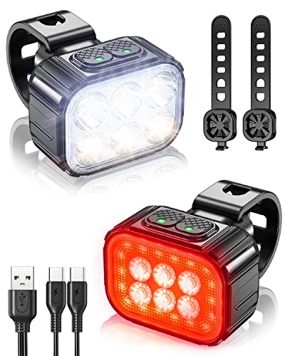 Bike Lights Front and Back, 2023 Upgrade 6 LED Bicycle Lights IP65 Waterproof Super Bright Cycle Lights, USB Fast Charging Adjustable Brightness Bike Light & Long Battery Life Mountain Bike Lights