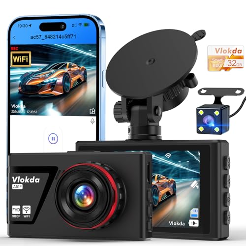 Dash Cam Front and Rear, Dash Cam WiFi/APP Control 1080P Car Camera Dash Cam, Dash Camera for Cars with Free 32G Card, Night Vision, G-Sensor, Loop Recording, 24H Parking Dashcam