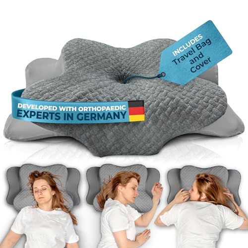 Glückstoff® Orthopedic Neck Pillow [FOR ALL SLEEP TYPES] - Side Sleeper - upport Cervical Pillow for Neck Shoulder Pain - Memory Foam Anti Snoring - For Side, Back & Front Sleeper