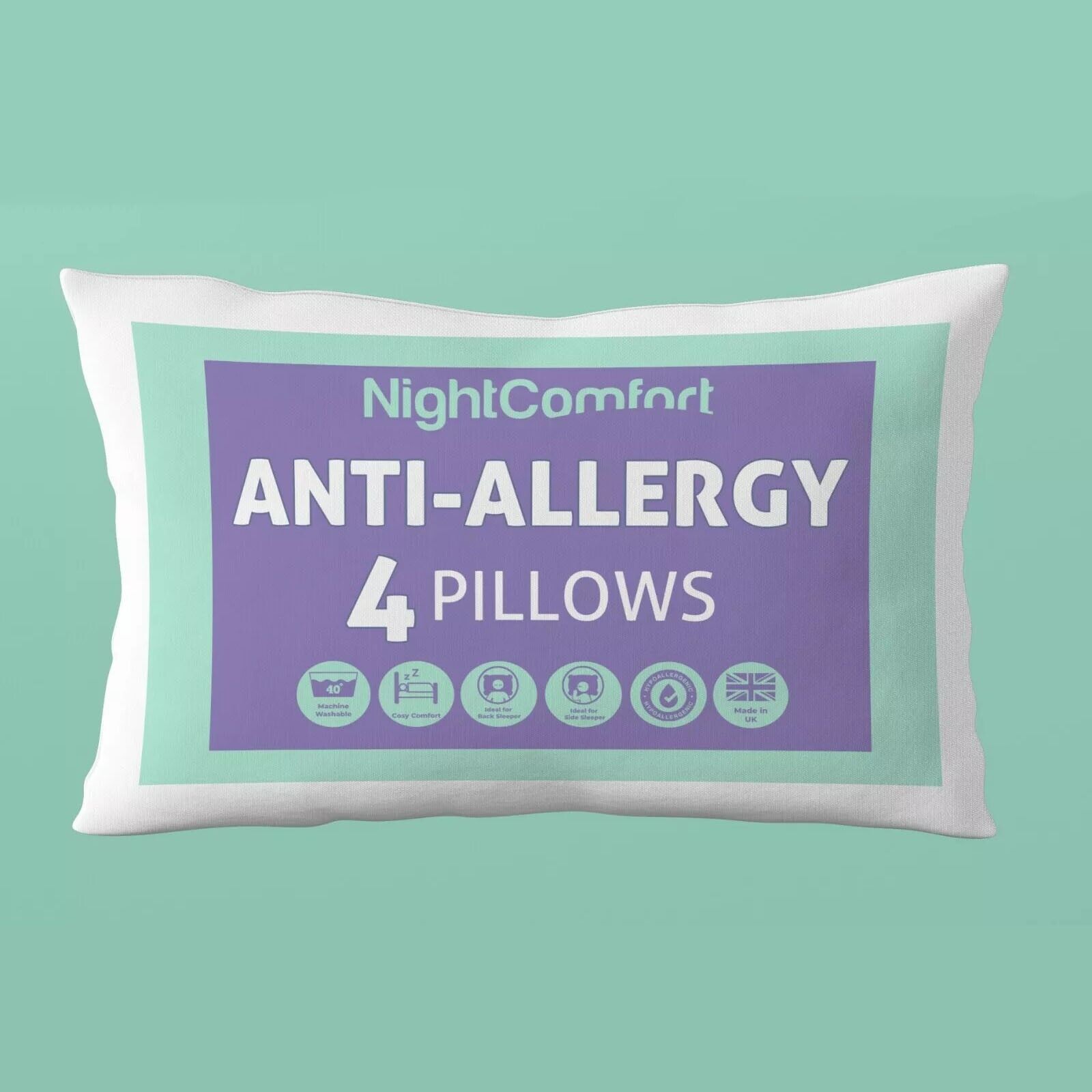 NightComfort Pack of 4 Anti-Allergy Microfibre Front Sleeper Pillow Soft Support