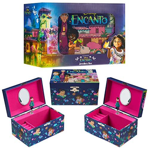 Disney Stitch Jewellery Box Musical Wind Up Spinning Figure Frozen Memory Box Keepsake Girls Teens Ring Slots Organiser Bedroom Decor, Gifts for Girls (Multi Encanto)