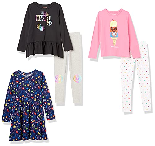 Amazon Essentials Disney | Marvel | Star Wars | Frozen | Princess Girls' Mix-and-Match Outfit Sets, Pack of 5, Marvel Icons Print, 9 Years