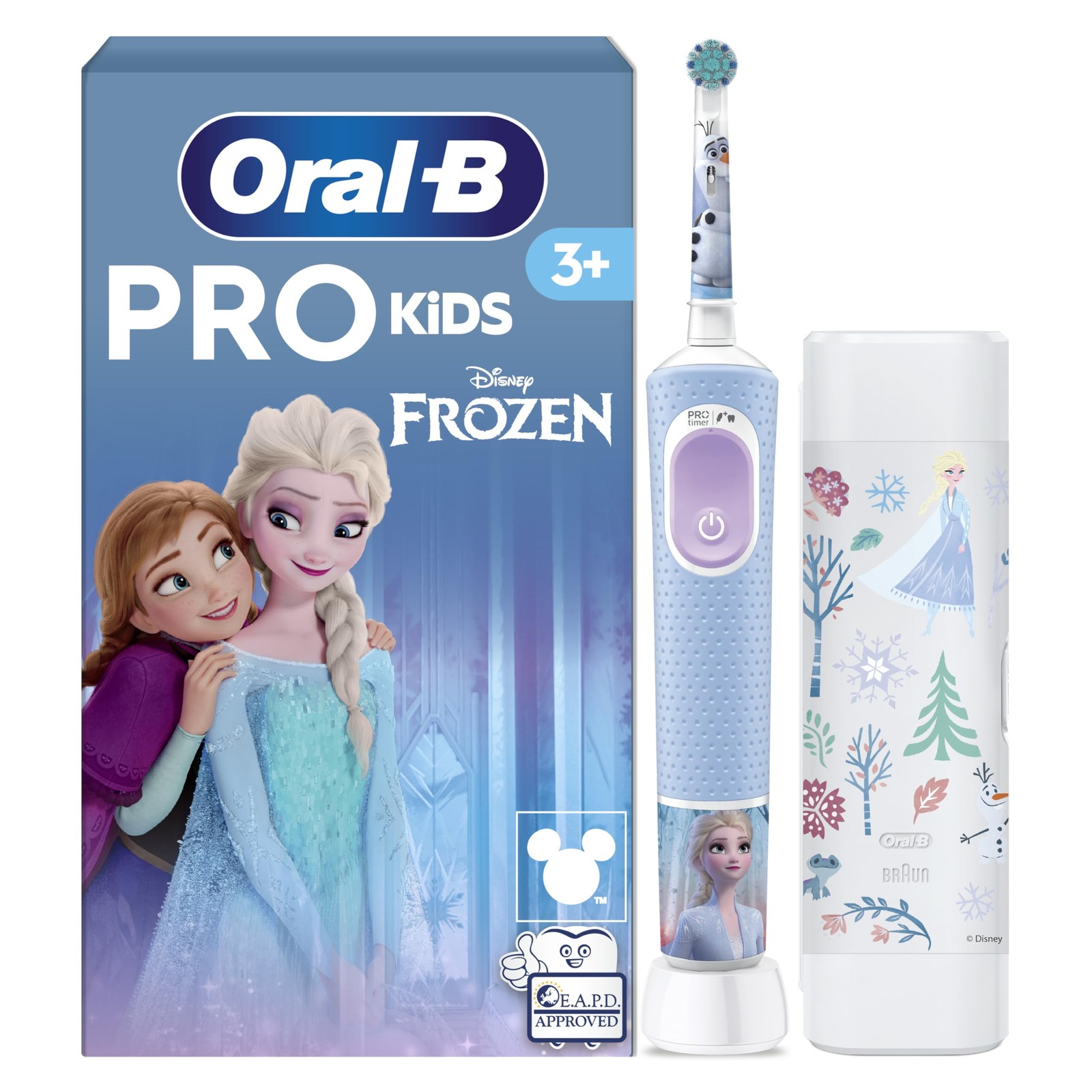 Oral-B Pro Kids Electric Toothbrush with Frozen Stickers, Travel Case, 2 Modes,