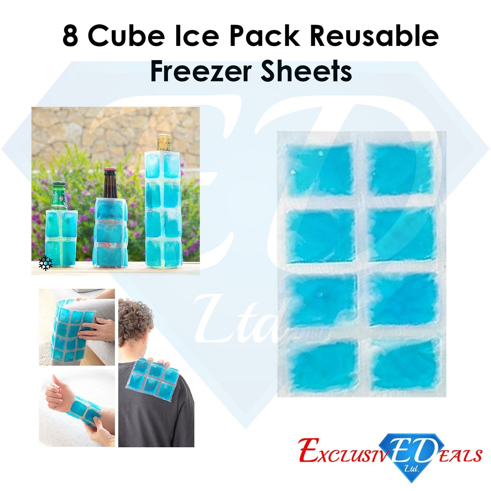 8 Cube Reusable Frozen Pack Gel Freezable Ice Sheets Cooler Bag Picnic Lunch