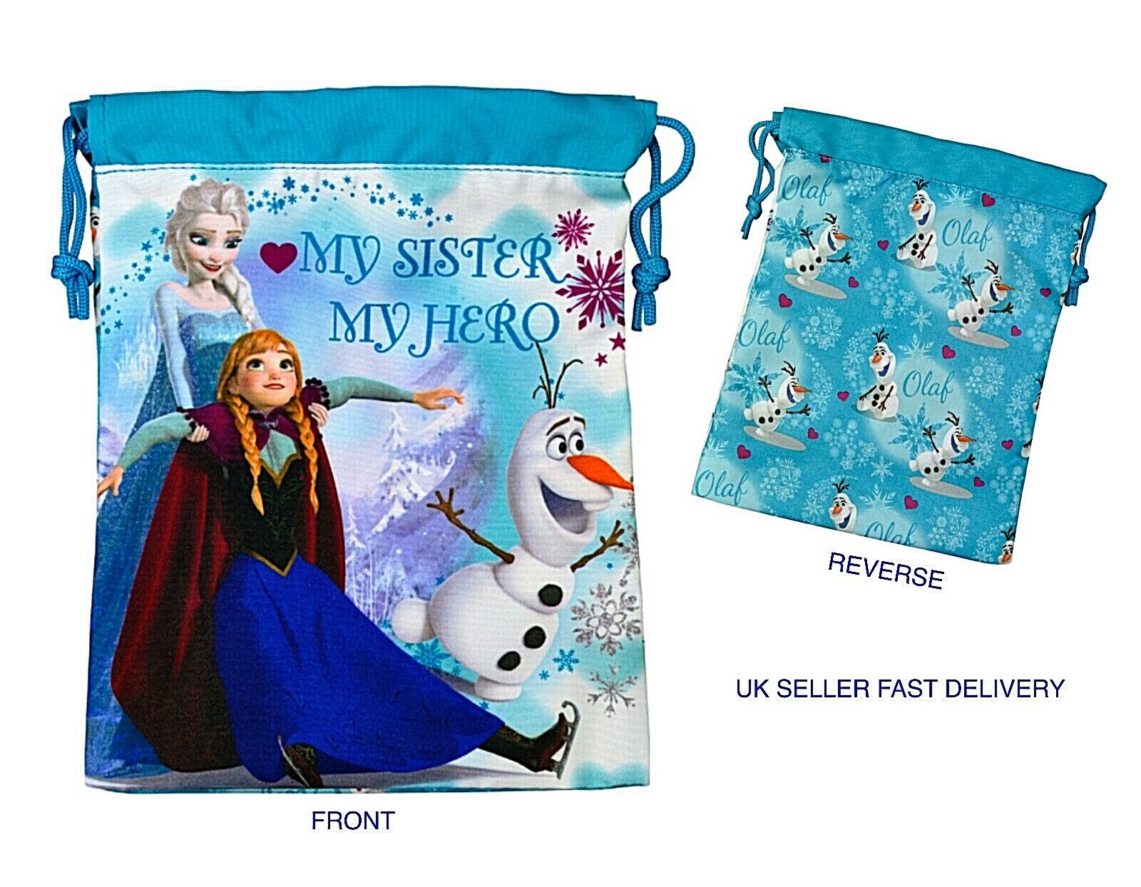 DISNEY FROZEN ELSA ANNA OLAF SOFT NYLON DRAWSTRING SCHOOL GIRLS LUNCH SNACK BAG