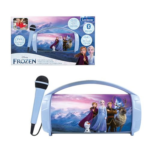 LEXIBOOK, Frozen, Wireless light speaker with microphone, Stereo sound, Karaoke function, USB and SD card ports, Rechargeable battery, Handle to carry everywhere, Blue/Purple, BTP585FZZLXB