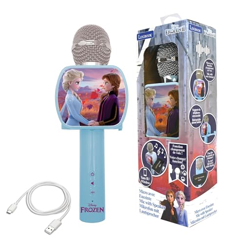 LEXIBOOK, Frozen, Wireless microphone with speaker and lights, 4 voice modifiers, Multicoloured light effects, Rechargeable battery, MIC280FZLXB