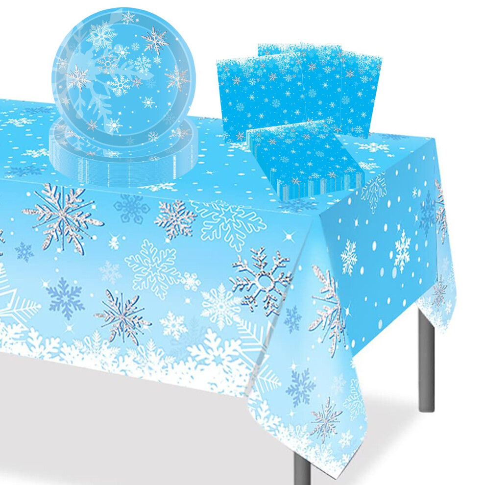 41Pcs Snowflake Christmas Party Tableware Decorations,Blue White Snowflake Tableware Set for Christmas Party Table Cloth,7inch Paper Plates,Napkins,Cups for Christmas Frozen Winte Dinnerware Decor