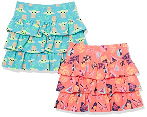 Amazon Essentials Disney | Marvel | Star Wars | Frozen | Princess Girls' Knit Ruffle Scooter Skirts, Pack of 2, Neon Star Wars Child, 4 Years