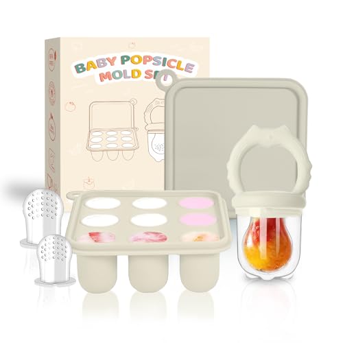 Baby Fruit Feeder Ice Lolly Moulds Set, Fruit Feeder for Babies Teething Relief, Baby Food Feeder for Safe Infant Self Feeding, Includes 3 Extra Food Pacifier