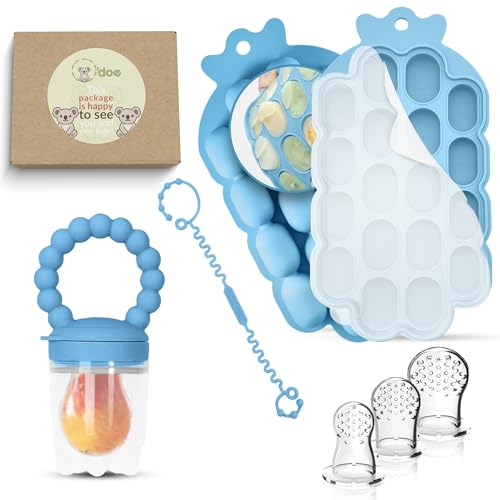 O’doe Silicone Fruit Feeder for Babies & Baby Food Feeder with Clip – 1-Pack Freezer Tray with Lid, 18-Hole Teething Dummy Fruit Feeder for Teething Relief, Includes 3 Extra Pacifiers, BPA-Free