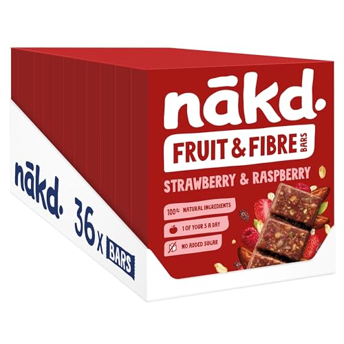 nakd. Fruit & Fibre bars - Strawberry & Raspberry - High in fibre - 100% Natural ingredients - No added sugar - Vegan - 36 x 44g bars - 1584g