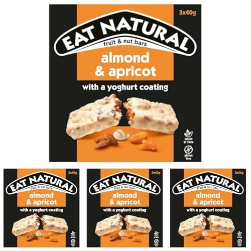 Eat Natural Almond & Apricot with a Yoghurt Coating Fruit & Nut Bars, 3 x 40 g (Pack of 4)