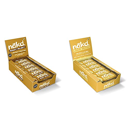 Nakd Peanut Delight Natural Fruit & Nut Bars Vegan Bars Gluten Free Healthy Snack, 35 g (Pack of 18) & Lemon Drizzle Natural Fruit & Nut Bars Vegan Gluten Free Healthy Snack, 35 g (Pack of 18)