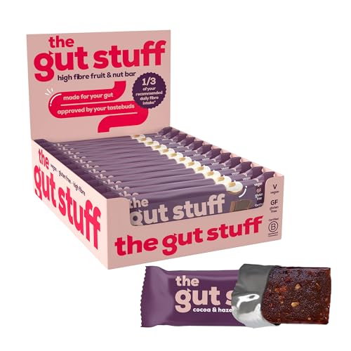 The Gut Stuff High Fibre Fruit & Nut Bars – Gut Friendly Snack, Gluten Free, Vegan, Low Calorie, All Natural - Cocoa & Hazelnut, 12 x 35g Box