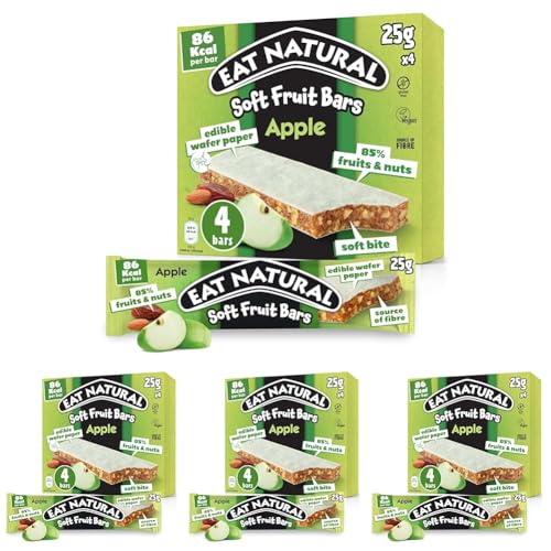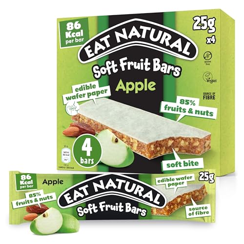 Eat Natural Soft Fruit Bars - Apple, Dates & Almonds - Vegan, Gluten-Free Snack and Source of Fibre - Simple, Delicious On-the-Go Snack Bars – 25g (Pack of 15)