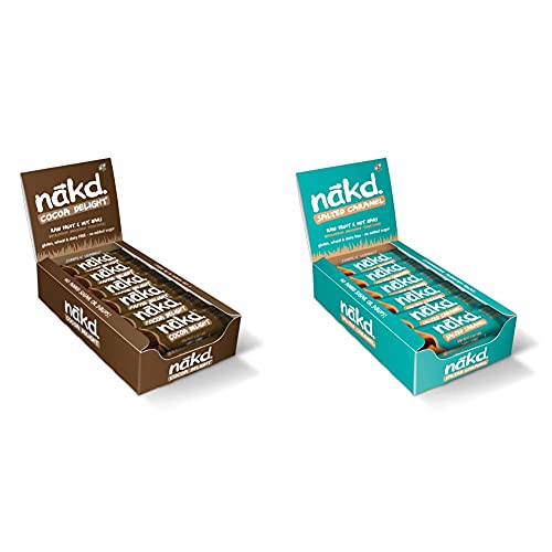 Nakd Cocoa Delight Natural Fruit & Nut Bars - Vegan - Gluten Free - 35 g (Pack of 18) & Salted Caramel Natural Snack Bars - Vegan Bars - Healthy Snack - Gluten Free Bars 35 g (Pack of 18)