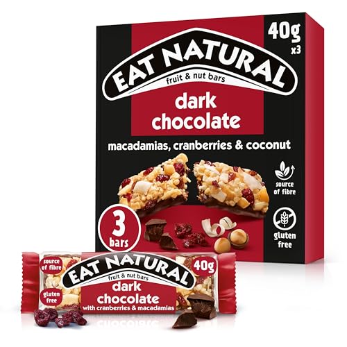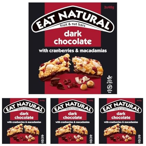 Eat Natural Dark Chocolate with Cranberries & Macadamias Fruit & Nut Bars, 3 x 40 g (Pack of 4)