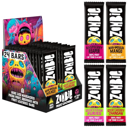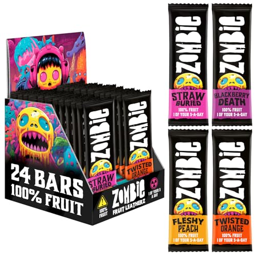 Zombie Fruit Bars, Variety Box (24 Bars, 4 Flavours), 100% Dried Fruit, Healthy Snacks for Adults, Kids, Low Calorie, Gluten Free, Vegan, Halal, Bulk, Real Fruit, No Added Sugar, Natural, Roll Ups